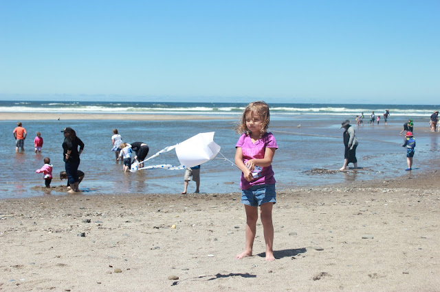 Last weekend we whisked the family away for a short vacation to Newport. We rented a condo in the Nye Beach District and could see the ocean from our living room window. Before checking into our weekend digs, we explored the original Yaquina Head lighthouse, went to the Hatfield Marine Science Center and checked out Nye beach in our rain gear. After our dinner of lentil soup in acorn squash bowls the rain had subsided so we returned to the beach for an extended walk and also tooled around town. The next morning we visited the Oregon Coast Aquarium, arriving right when it opened in order to see the otters being fed at 10:30 am. We also got to see JoJo & Wren, who are trained pelicans, and lots of puffins. But it was the jellyfish the girls enjoyed seeing the most. The rest of the afternoon we walked out on the jetty which channels fishing boats under the Newport bridge, played on the beach, and went to the pirate ship slide park. Our last morning on the coast we drove to Lincoln City for Windstock, which is their annual kite festival. The girls got to make their own kites and had a blast flying them. Overall, we had an amazing three days, packing so much activity into our short time at the beach, that it felt like our vacation was a lot longer.